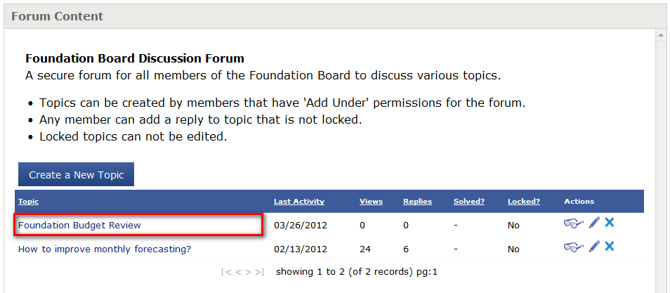 Select the topic name in the "Forum Contents" page.